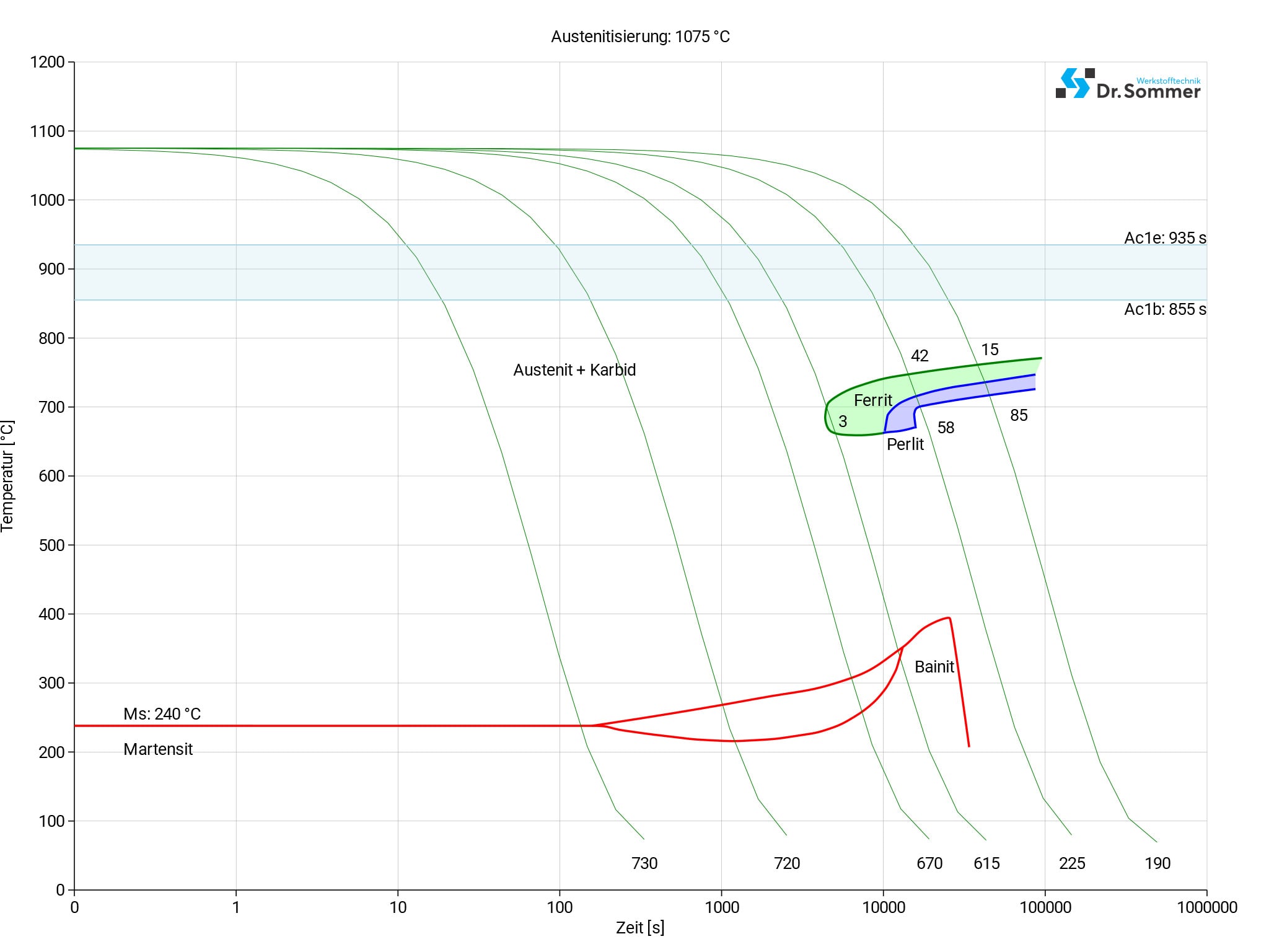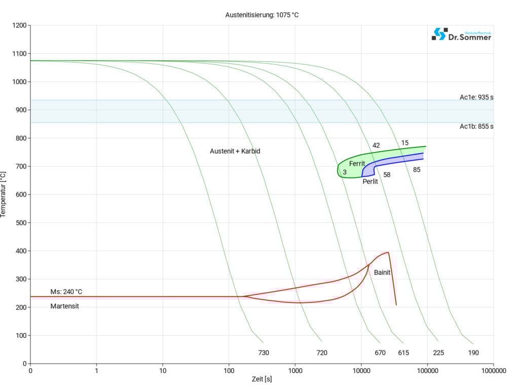 Ce diagramme illustre des variations minimales, se produisant au fil du temps à des températures différentes. Celles-là entrent en jeu lorsqu’on opère un traitement thermique, car elles sont révélatrices des conditions optimales pour des processus tels que le durcissement, le recuit et la normalisation.