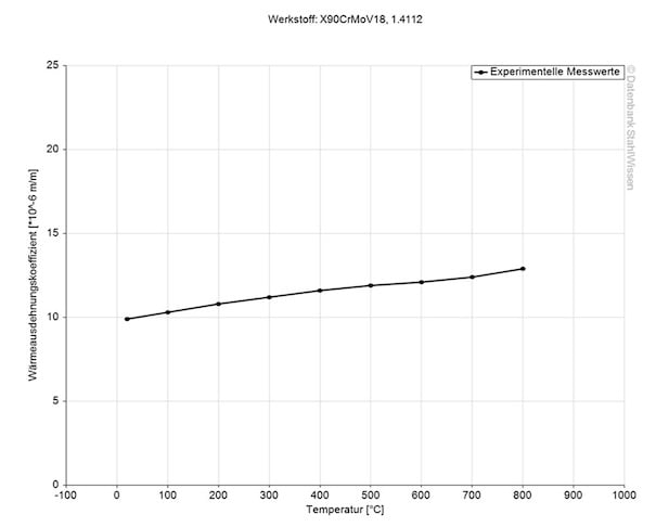 Ce diagramme montre dans quelle mesure le 1.4112 peut se dilater ou se contracter lorsque les températures changent. Cela peut être très important lorsque l’on travaille à des températures élevées ou avec de fortes variations de température.