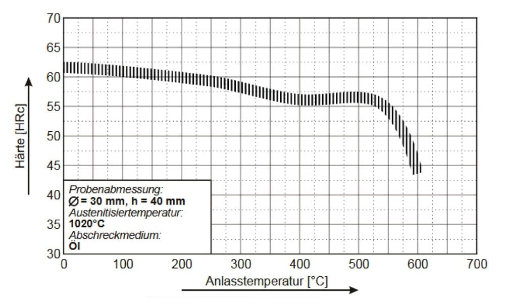 La plage de températures utiles est limitée en raison de la perte de ductilité à des températures inférieures à zéro et de la perte de résistance, due à un revenu excessif, à des températures plus élevées.