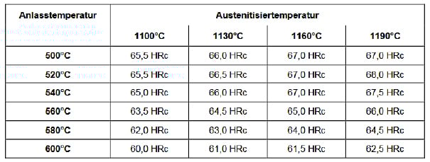 Le HSS PM 30 est revenu trois fois, avec un refroidissement à température ambiante entre chaque cycle. Le temps de maintien est d’une heure par cycle. Pour le travail à froid, la température de revenu doit impérativement être de 560 °C, quelle que soit la température d’austénitisation.