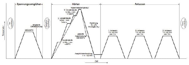 Il est recommandé de durcir l’acier 1.3294 dans un bain de sel, un four sous vide ou sous atmosphère contrôlée.